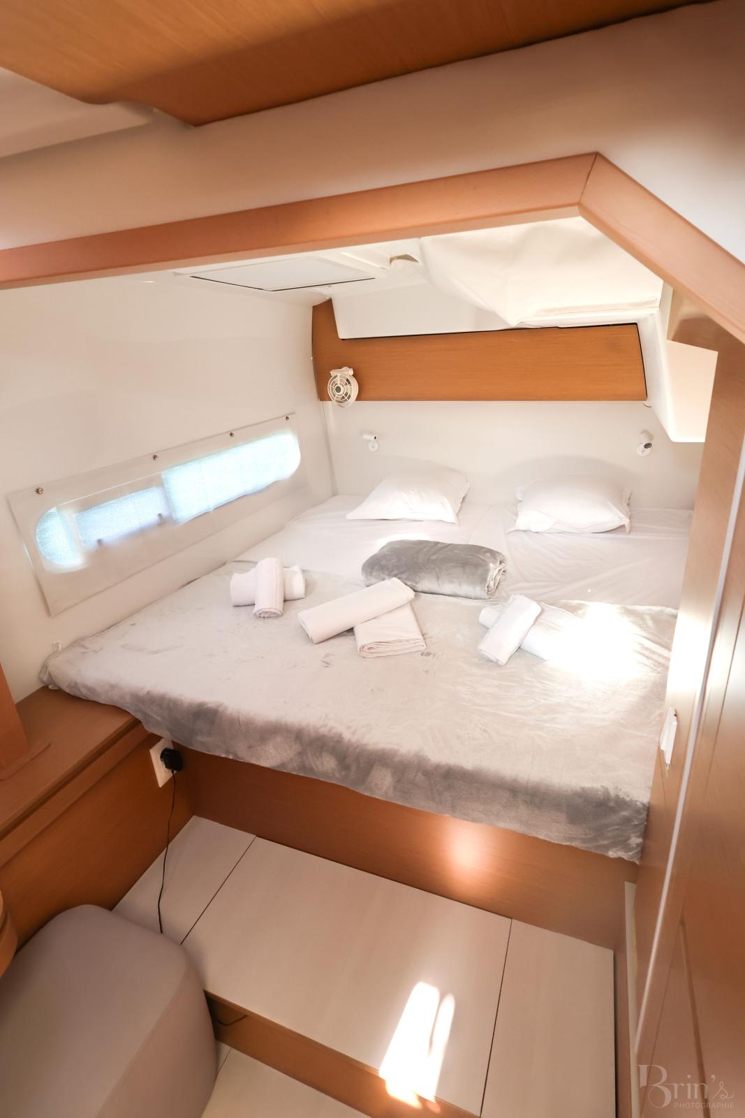 3 cabines doubles confortables (plus 2 pointes avant)