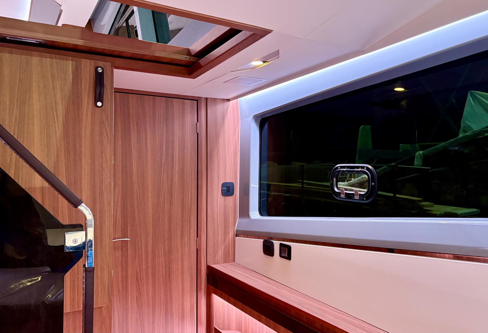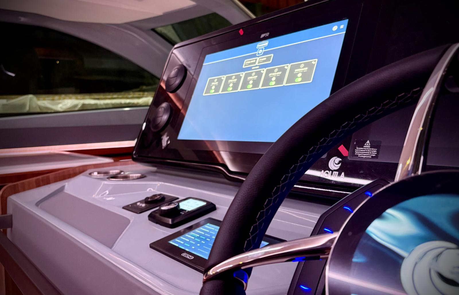Le Aquila 46 Coupe est pensé comme un véritable “appartement flottant” : vastes espaces intérieurs, cockpit arrière spacieux et flybridge fermé (dans la version coupé).