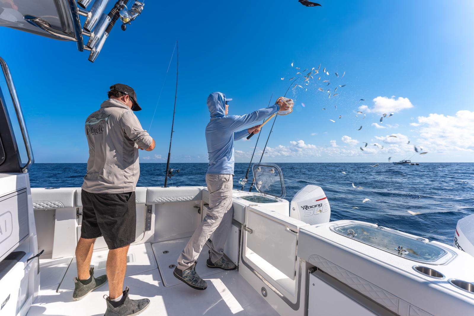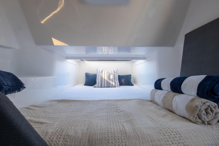 Le vaste cockpit arrière intègre un poste de préparation dédié aux passionnés de pêche, tout en se transformant facilement en véritable espace de convivialité grâce à la cuisine d’été et au barbecue en option. Les glacières coulissantes offrent un rangement pratique tout en créant des assises supplémentaires orientées vers l’arrière, idéales pour accueillir confortablement vos invités.