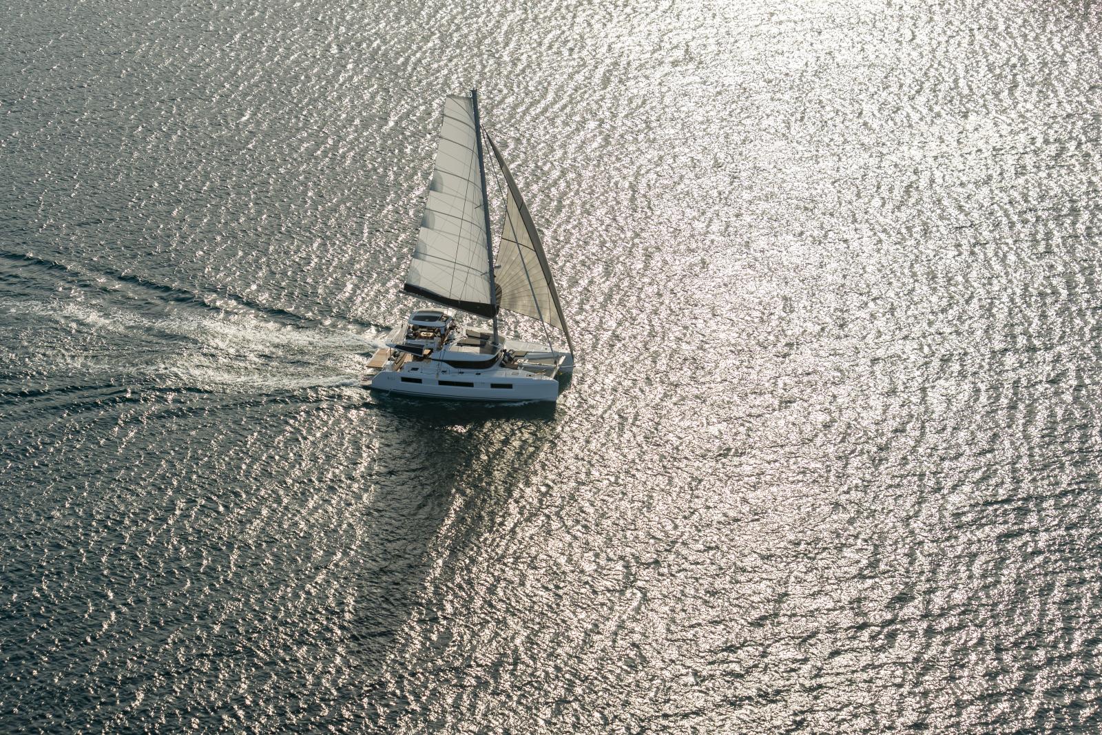 Ce lieu convivial est apprécié au mouillage mais aussi en navigation. Grâce à une hauteur de bôme confortable au-dessus du flybridge, celui-ci peut être utilisé en toute sécurité en navigation.